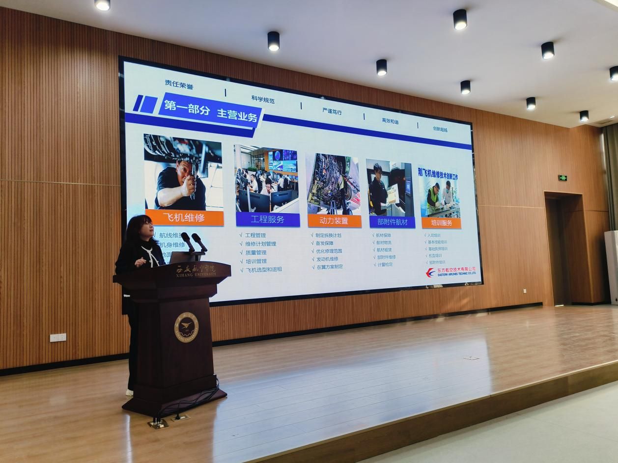 作为西北地区航空维修领域的领军企业,东航技术西安分公司是西安咸阳机场最大驻场单位,也是具备 a320 系列飞机全深度维修能力的核心机构,同时承担着 c919 国产大飞机 “沪陕快线” 的运行保障重任。宣讲会上,公司人力资源部负责人通过ppt 演示,全面介绍了公司发展历程、核心业务布局、澳客网竞彩的文化及人才培养体系。重点解读了本次招聘的飞机维修工程师岗位需求,详细说明任职要求、薪酬福利及职业晋升路径,并特别强调公司为应届生打造的 “定制化培训计划”,涵盖 ccar-147 部机型理论培训、模拟机实操训练等专业赋能环节,让在场学生对职业发展前景有了清晰认知。