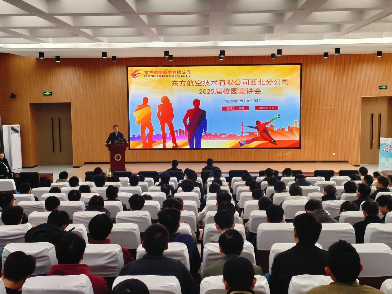 为深化产教融合协同育人机制,搭建航空专业人才精准对接平台,2025年11月4日,东方航空技术有限公司西安分公司(以下简称 “东航技术西安分公司”)专场宣讲暨面试会在西安航空学院顺利举办。本次宣讲面试由飞行器学院组织邀请东航技术西安分公司副总史鹏、人力资源部经理马大刚等来校,面向我校2026届毕业生带来优质就业岗位与行业前沿资讯,现场吸引百余名学生参与。